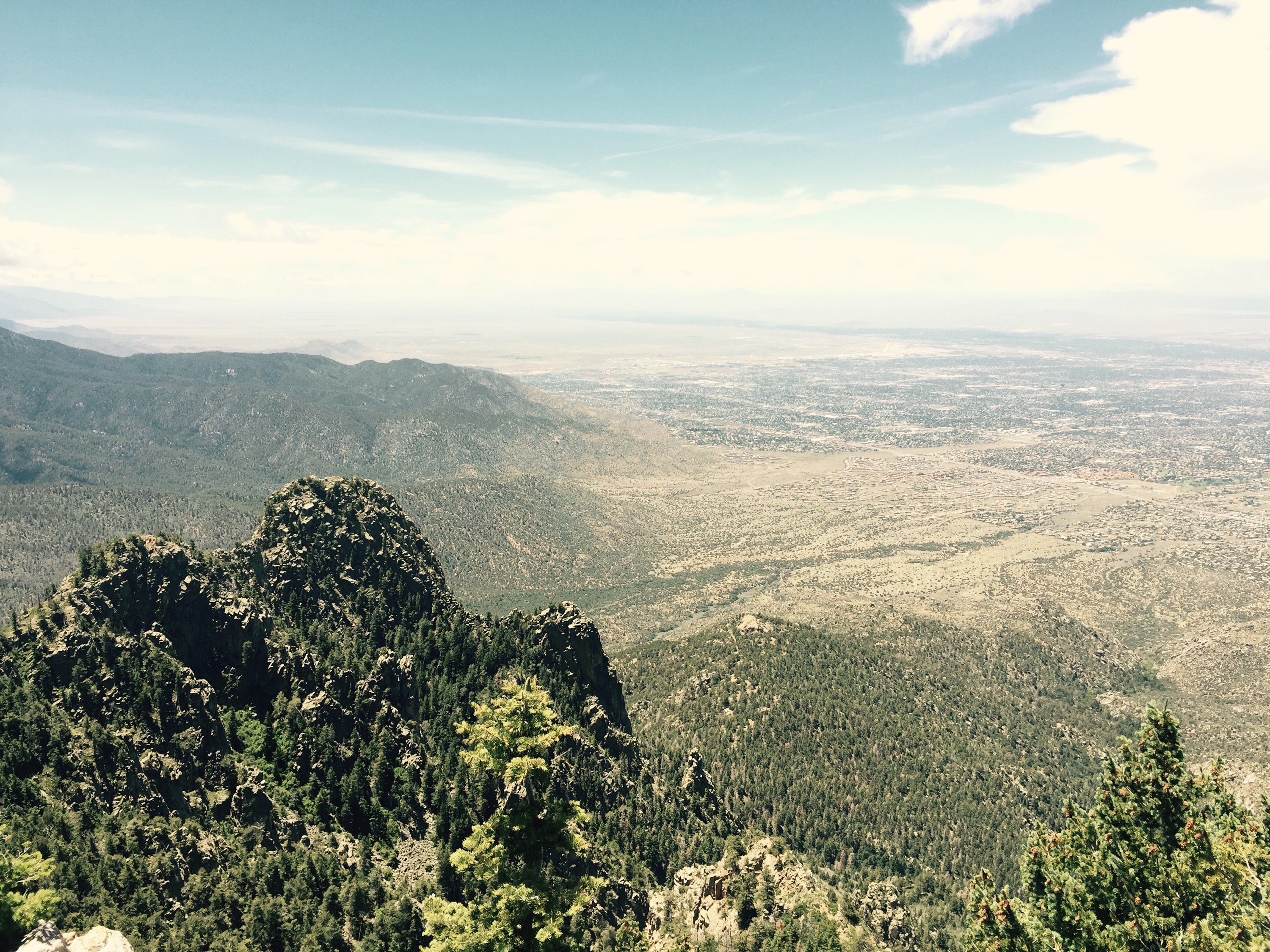 The 15 minute tram ride 12,000 feet to the peak was spectacular in and of itself, but upon reaching the crest, you are awarded a panoramic view of New Mexico, encompasing almost 10% of the ENTIRE state. To the west you can see all of Albuquerque, laid out in the rain shadow of the mountains, a stark contrast to the green conifer forests to the east of the mountain. To the north and south, the range stretches for as far as the eye can see, wrapping around the city as if to shield it from the world outside.