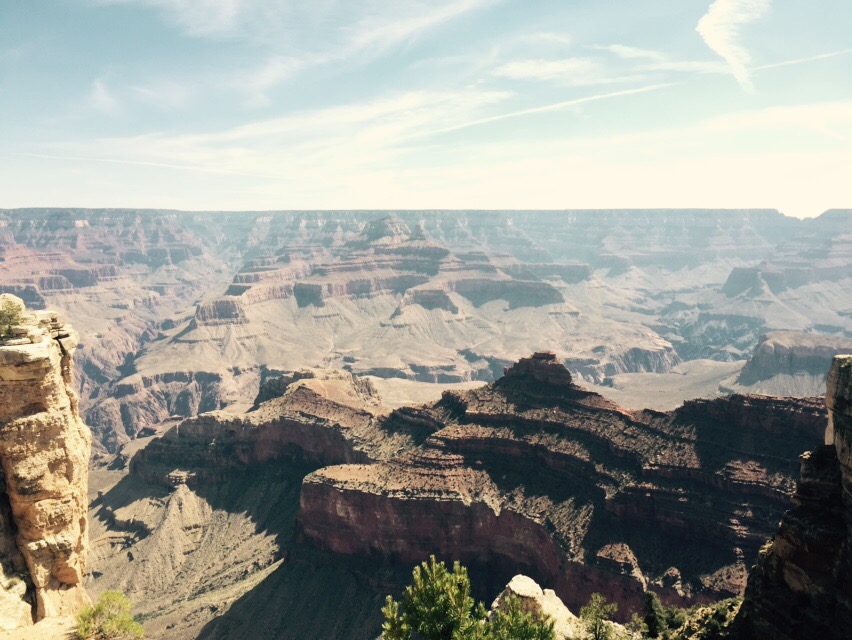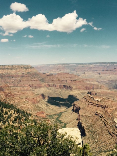 We traveled the south rim for about an hour, the entire time only passing one other English speaking family. As we were headed towards the horse shoe mesa we spotted a large family, all staring out across the canyon. We walked up to see what the view was, and I distinctly heard “well I think it looks like a butt crack.”