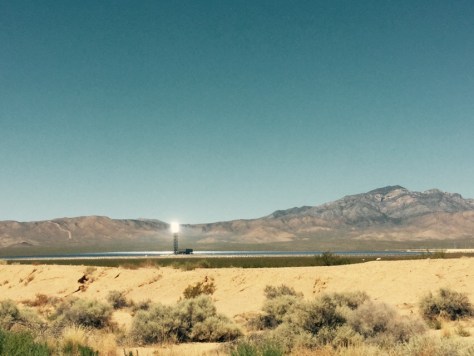 Oh and speaking of the sun, we saw another New Vegas staple, something incredibly cool. The Helios One complex (The Ivanpah Solar Electric Complex). Truly a marvel of engineering, a square mile of mirrors covers the land, each is aligned to direct sunlight into one of three huge towers, at the top of which lie 360 degrees of high efficiency solar panels. These panels collect all the sun being beamed directly into them by the mirrors, drastically outperforming conventional solar farms, while managing to look like something straight out of a sci-fi movie. The tops of each tower gleam as bright as the sun itself, even in broad daylight the sheer amount of energy being blasted into them is quite evident. A big part of me wants to try and flash cook a chicken by launching it at a tower, but I feel like the armed guards might frown upon such a thing. More updates to come.