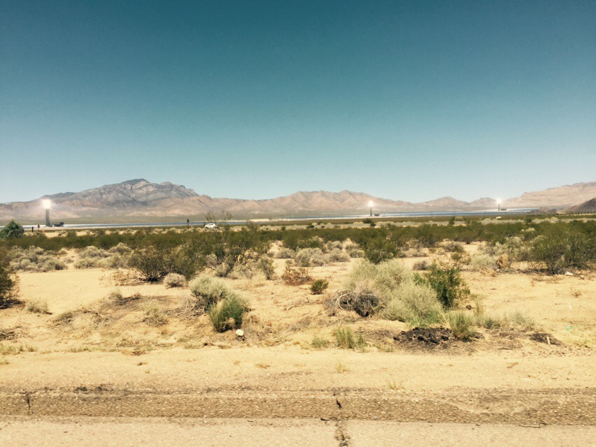 We’re in California and driving through the Mojave, which again, has completely defied our expectations. It is most certainly a desert, but what struck me about it is this: there’s only one word that came to mind when I looked out across it, “lush”. The plants out number the sand by a ridiculous margin, almost everything is a colored a nice dusty green. Cacti and agave have taken over completely in place of trees, and even look the part. It’s a truly alien environment, we drove across the Ivanpah dry lake, which, while definitely dry, could have fooled me as to its status as a lake. It was mountains, mountains covered in shrubs and the small burrows of various creatures, seeking refuge from the blistering sun.