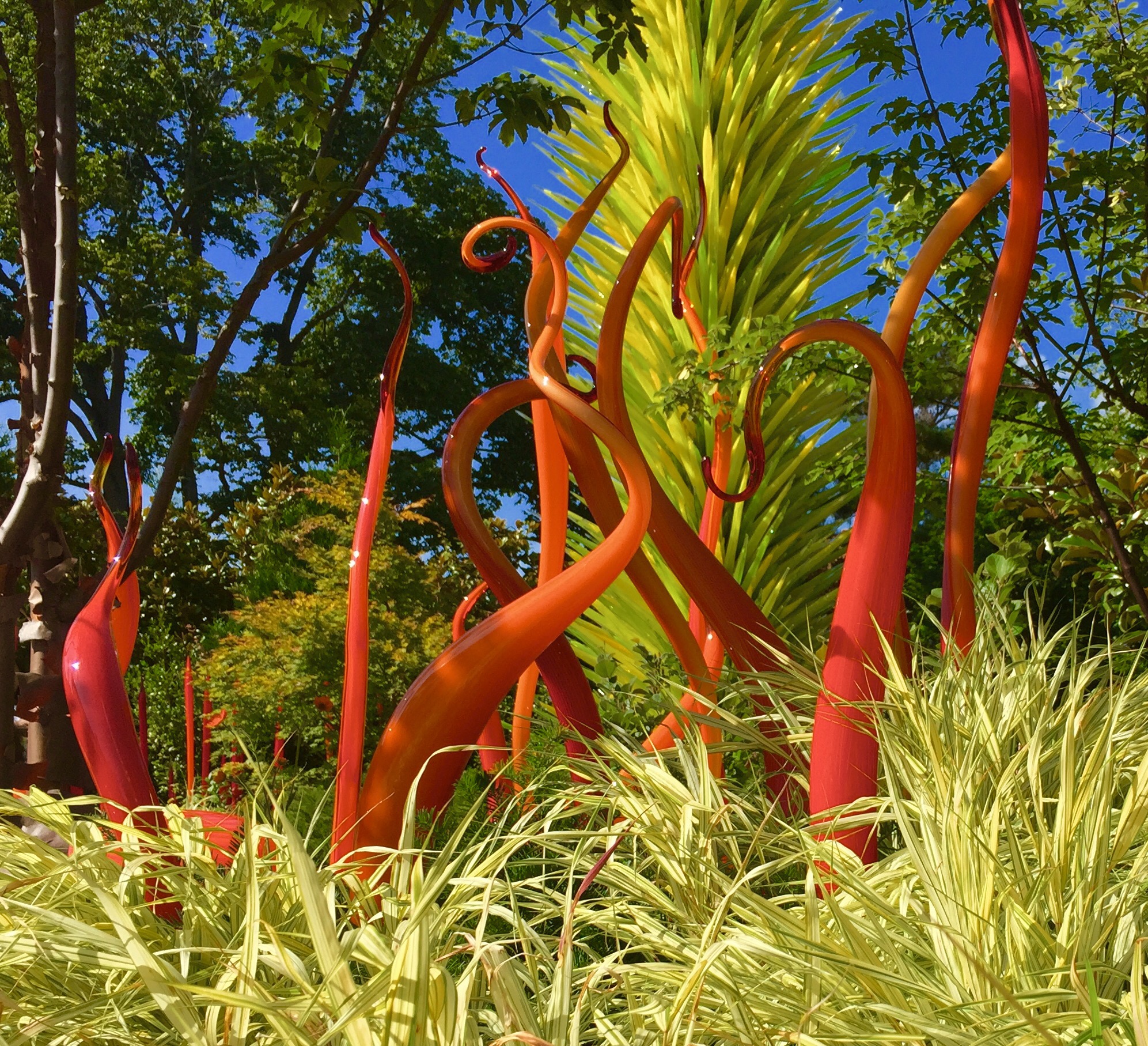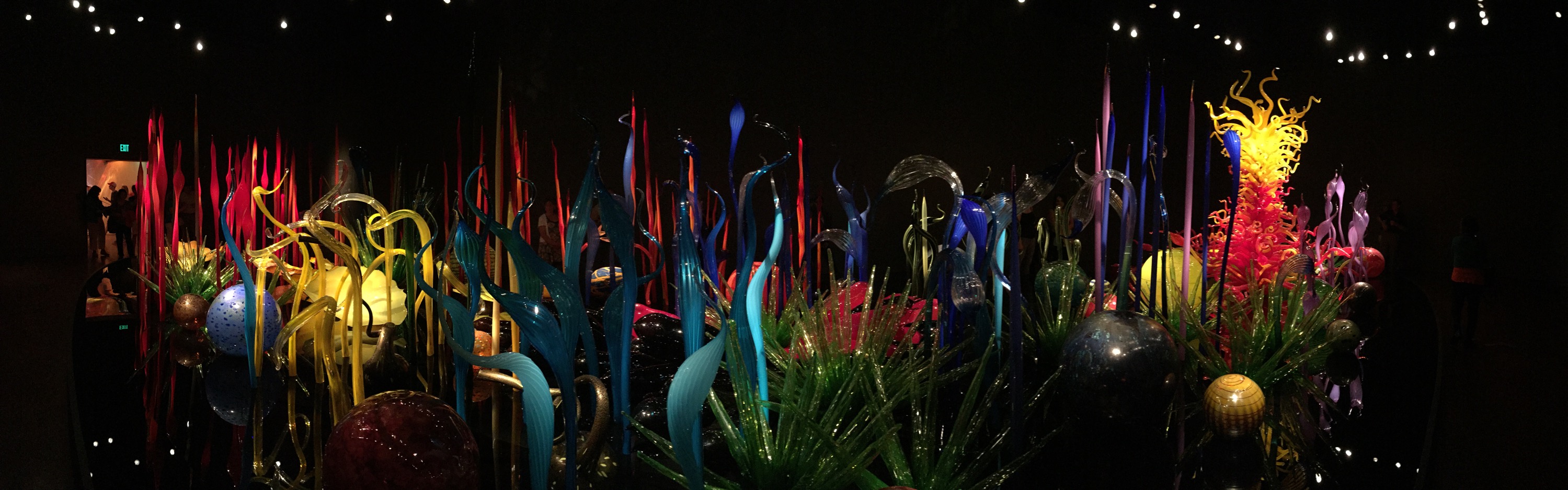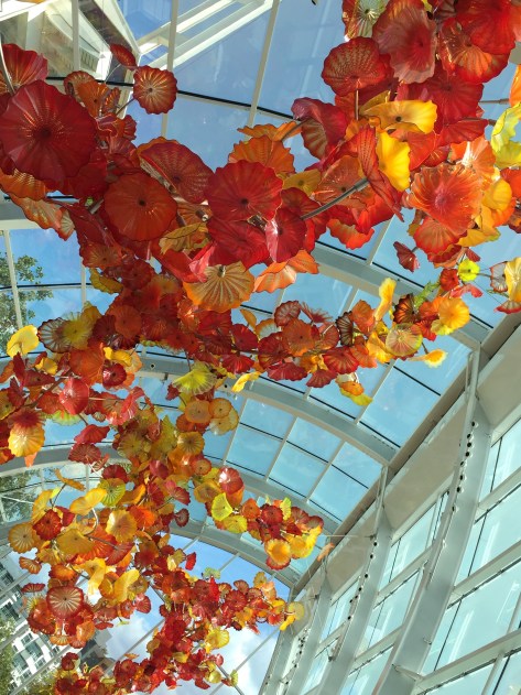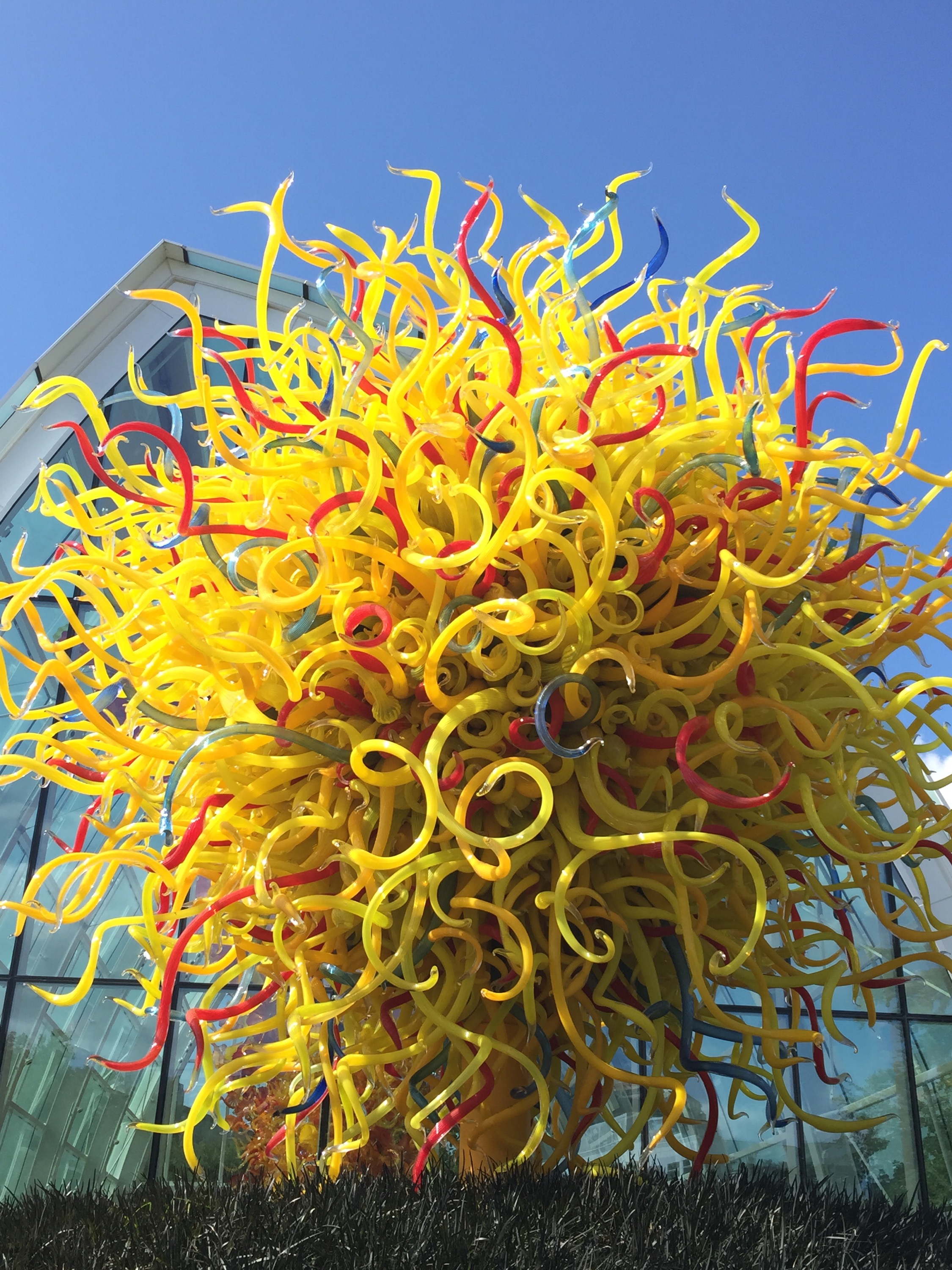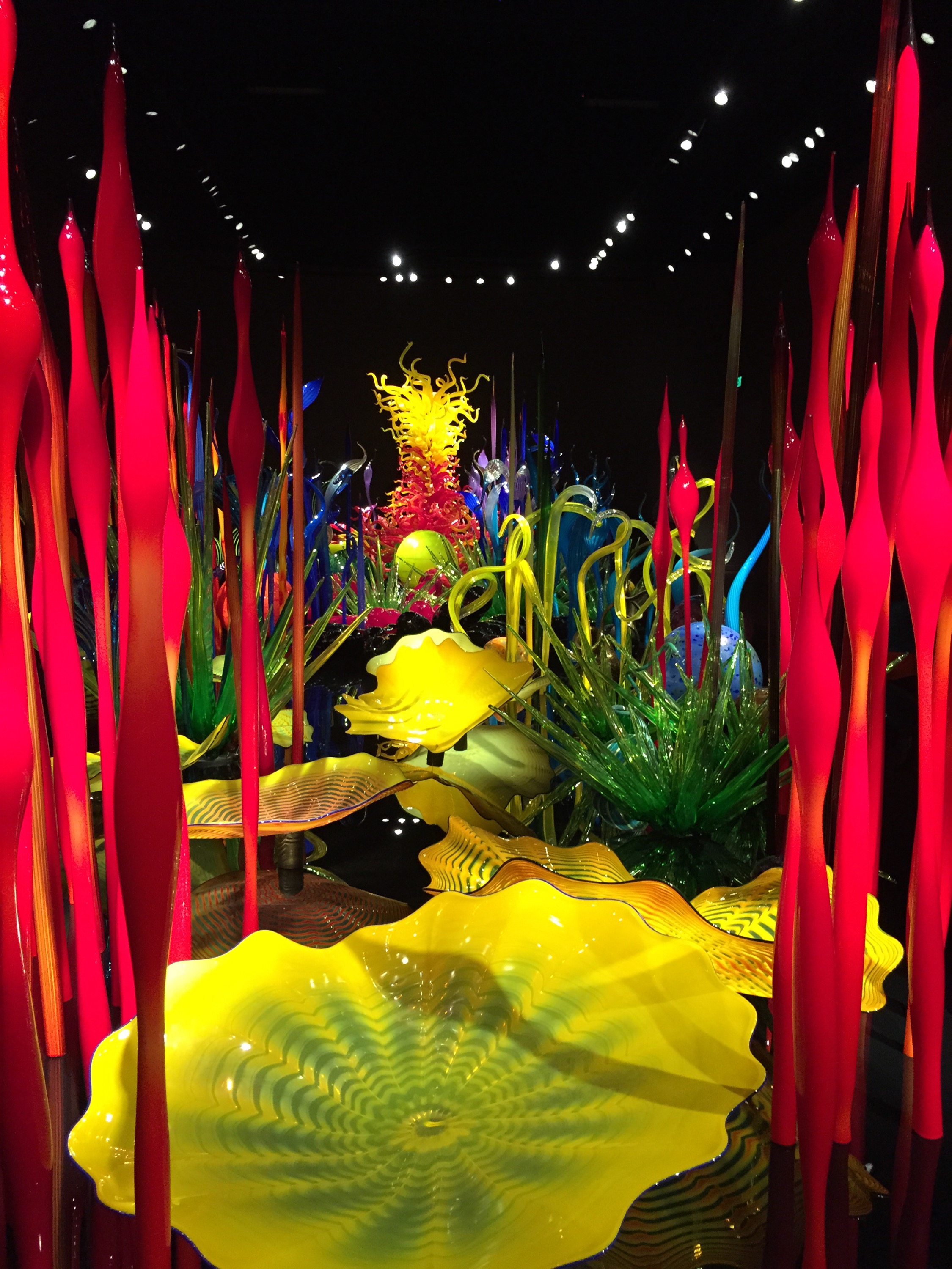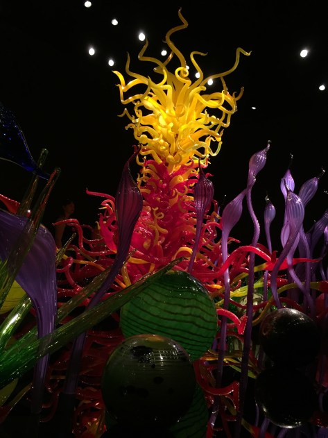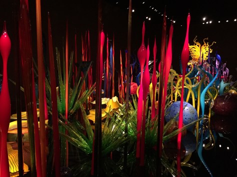 The Seattle Art museum and the Chihuly Gardens at the space needle. Chihuly, a master of glass work, and is known around the world for his unique style which falls somewhere between actual glass blowing and big art. His work is exhibited across the globe, with permanent installations scattered across the U.S. and Europe, and some in east Asia and India. One of his largest installations, the Chihuly garden in Seattle wraps around the base of the space needle, and makes up the majority of the grounds. Half indoor half outdoor, it is a maze of twisted glass and neon pipes, carefully designed to compliment it’s setting.