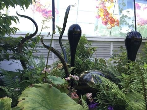 Opened in 2012, the gardens are some of his more recent work, showcasing the extent to which his scale his progressed. His work at the Phipps, it contours to the environment perfectly, adding a unique character to the conservatory; but it is dwarfed in both size and complexity by the Chihuly Gardens. Whereas previous works were designed to compliment the exhibits to which they were auxiliary; here the garden is designed around the glass, allowing for Dave’s art to stand front and center as the focal point of each area. As you exit the Glass House you come across a magnificent greenhouse entryway, before stepping outside into the sun.