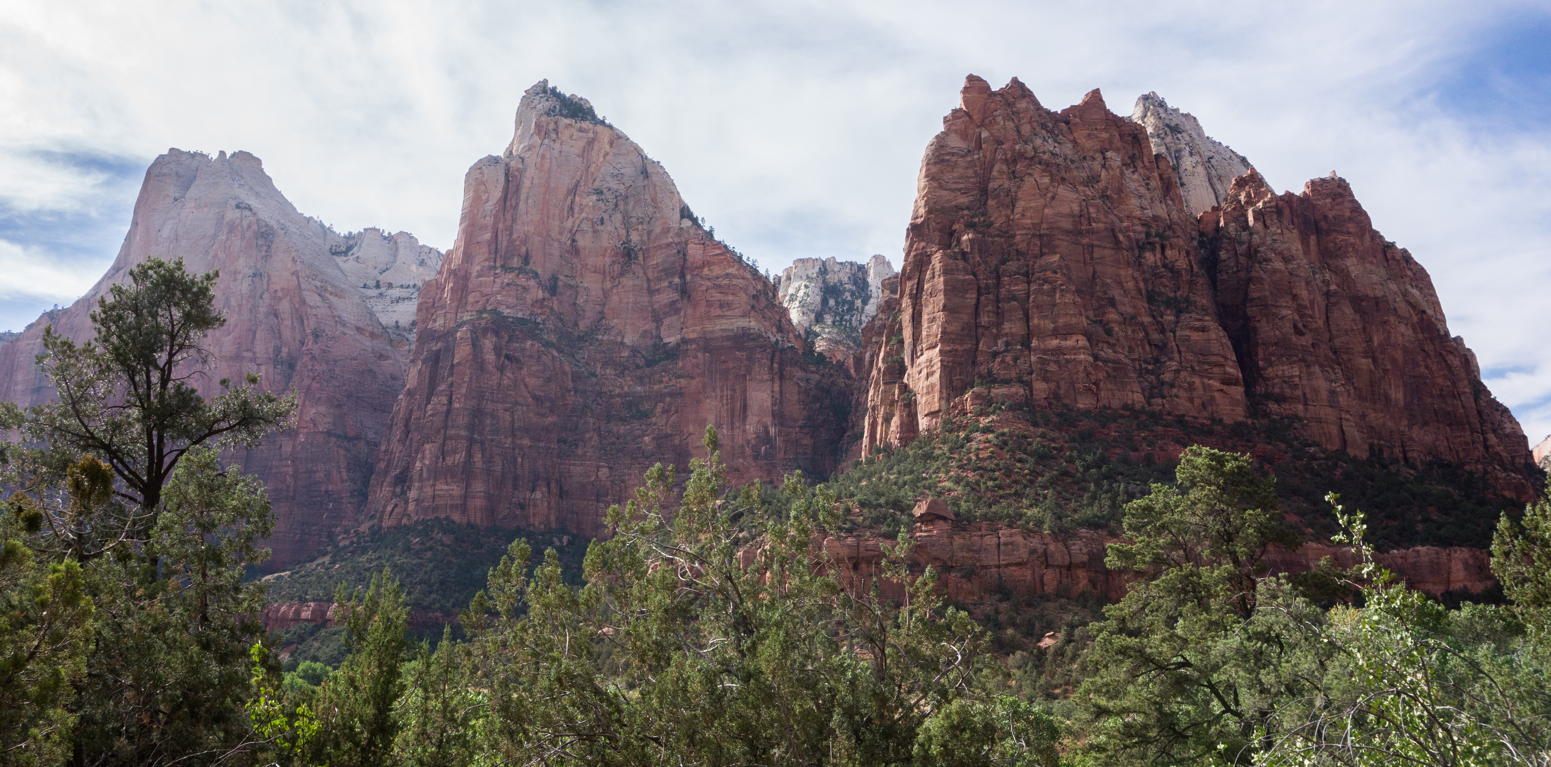 Like almost everything in Southern Utah, Zion is part of the Grand Staircase. Not the National Monument, but the geological formation, The Colorado Plateau. The Colorado Plateau is a one hundred and thirty thousand square mile blob, centered roughly on the four corners. During the Paleozoic era the plateau was inconsistently either a sea, or a dry sea. Every time the water retreated it left more and more sediment behind, and over the next three hundred million years, that sediment got compacted into miles and miles of sandstone. Skip waaaay ahead to the Cenozoic era (that’s the current one), about 20 million years ago. The entire area undergoes uplift at an angle which begins to tilt it unevenly as it leads north. The enormous steps of the Grand Staircase were thus formed, as the land rose more than ten thousand feet from where it was deposited. Rivers that used to be sitting on level ground, now found themselves raised to the peaks of mountains, and cut viciously to freedom down through the fractured sandstone. The rivers got stronger and gorges formed, floods occurred and massive landslides began to shape the canyon floors. Finally things began to settle down, and as the dust cleared the great canyons and peaks of the Colorado Plateau were revealed. Zion is the best of these. It’s something priceless buried in a pile of gold.