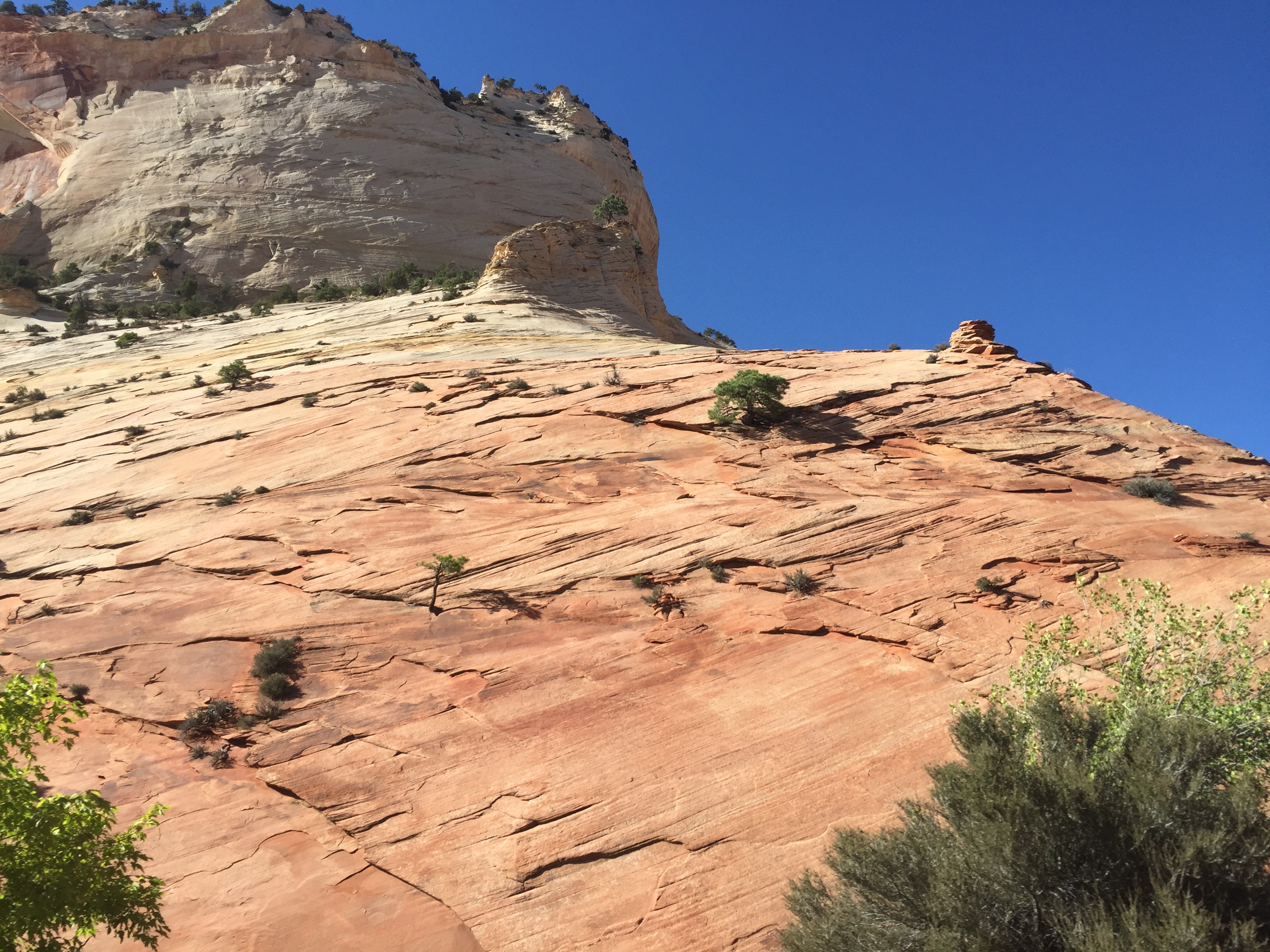 However there are a few things to know about Zion before you start trying to book a campsite. First off is that you’ll need more than a day to see it. Probably three or four. While it’s not very big, the hikes it offers are all very long, and all of them are worth doing. The backcountry is also a possibility for more experienced hikers, though if you wish to explore or camp there you’ll need a permit, which must be reserved months ahead of time. We were lucky enough to get one, but they fill fast so stay on it. The second thing to know is that it’s hot. Like really hot. It reached over one hundred everyday we were there, and stayed that way well into the night. You’ll see signs everywhere warning of the peril of dehydration, they’re not kidding. Take tons of water if you plan to hike for a good portion of the day, this goes for anywhere in the high desert, but Zion’s hikes can also be incredibly steep, making them even more difficult. Water stations can be found at multiple places throughout the park, namely the visitor center and lodge. The third and final thing you should be warned about, is how little mobility you’ll have. Once you get to a trailhead you’re all well and good, but most of the park is off limits to cars, mainly because you can’t build a road up quarter mile vertical inclines. There’s a bus that takes you through the canyon, but parking is pretty terrible. The wait to get on however, is never much worse than fifteen minutes. The northern backcountry can be accessed by some dirt roads, but be very aware of the weather conditions before you attempt traveling on them, any water and they turn into quicksand.