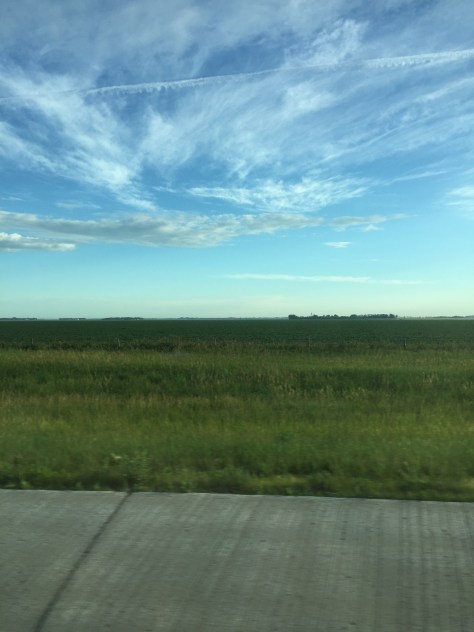 We’re on the road once more, and after our bust at Minneapolis, we’re glad to be headed for consistent attractions from here on out. What little hills there were have flattened out and now the grass seems to stretch for miles… Because it does. Little islands of trees crop up in the distance, framed against fields of gradient green and patchy clusters of greying clouds, slowly returning to white after an evening of heavy rain. They lie like a blanket across the sky leading out of Fargo, the hazy blue horizon casting a stark contrast ahead of us. It heralds the arrival of the trip proper, and as we pass out from beneath the sheet it seems to reach out in desperation. It’s not done with us quite yet, which is too bad because we’re certainly done with it. I can see the sun up ahead, and with only a few hours before we pass into Mountain time and reach Theodore Roosevelt National Park, it’s looking like it’s gonna be a good day. More updates to come.