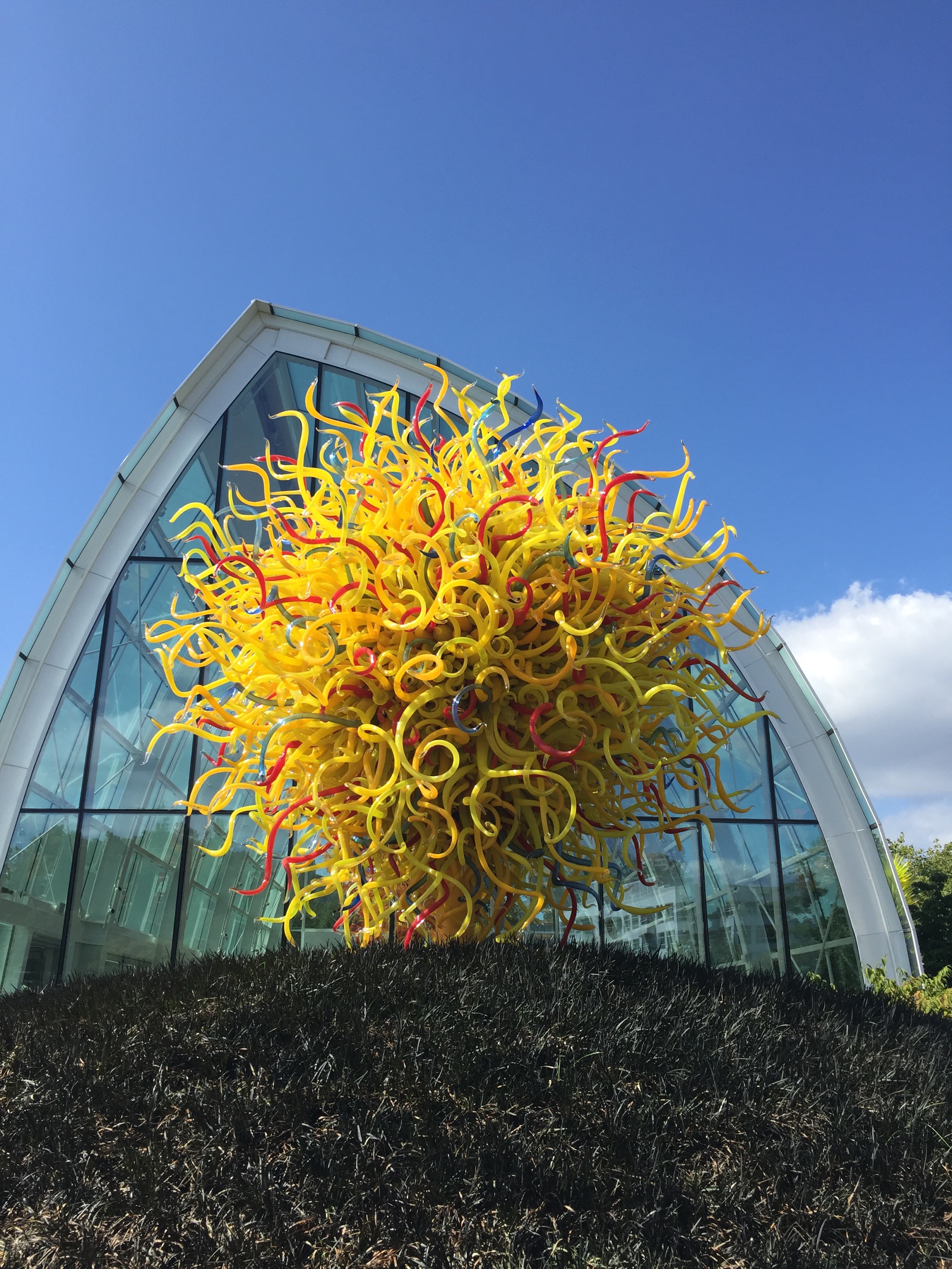 The Seattle Art museum and the Chihuly Gardens at the space needle. Chihuly, a master of glass work, and is known around the world for his unique style which falls somewhere between actual glass blowing and big art. His work is exhibited across the globe, with permanent installations scattered across the U.S. and Europe, and some in east Asia and India. One of his largest installations, the Chihuly garden in Seattle wraps around the base of the space needle, and makes up the majority of the grounds. Half indoor half outdoor, it is a maze of twisted glass and neon pipes, carefully designed to compliment it’s setting.