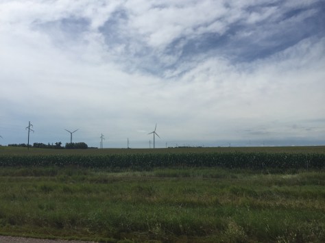After a night of rattling AC and torrential rain, we’re headed into Minnesota on the second to last day of the journey. The sole attraction today is the Mall of America, I’m not sure quite what to expect, though I assume it will be beyond hectic. The amount of cops posted up on the highway has increased exponentially as we head further east, as has the road work. The terrain has remained decidedly monotonous, the most interesting thing we’ve seen has been a repair man dangling from a helicopter about 70 feet up trying to repair a massive power line. And corn. More updates to come.