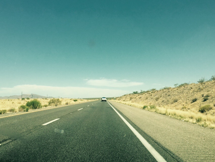 We’ve made it through Route 66 and are on our way to Lake Mead. The terrain has changed to something like desert, but the underbrush is still thick and there are no cacti. Slightly disappointing. The heat is back, it’s 90 degrees and rising, and although it’s dry it doesn’t take long to really sink in. There’s not much here, but with Vegas as the light at the end of the tunnel we don’t much care. More updates to come.