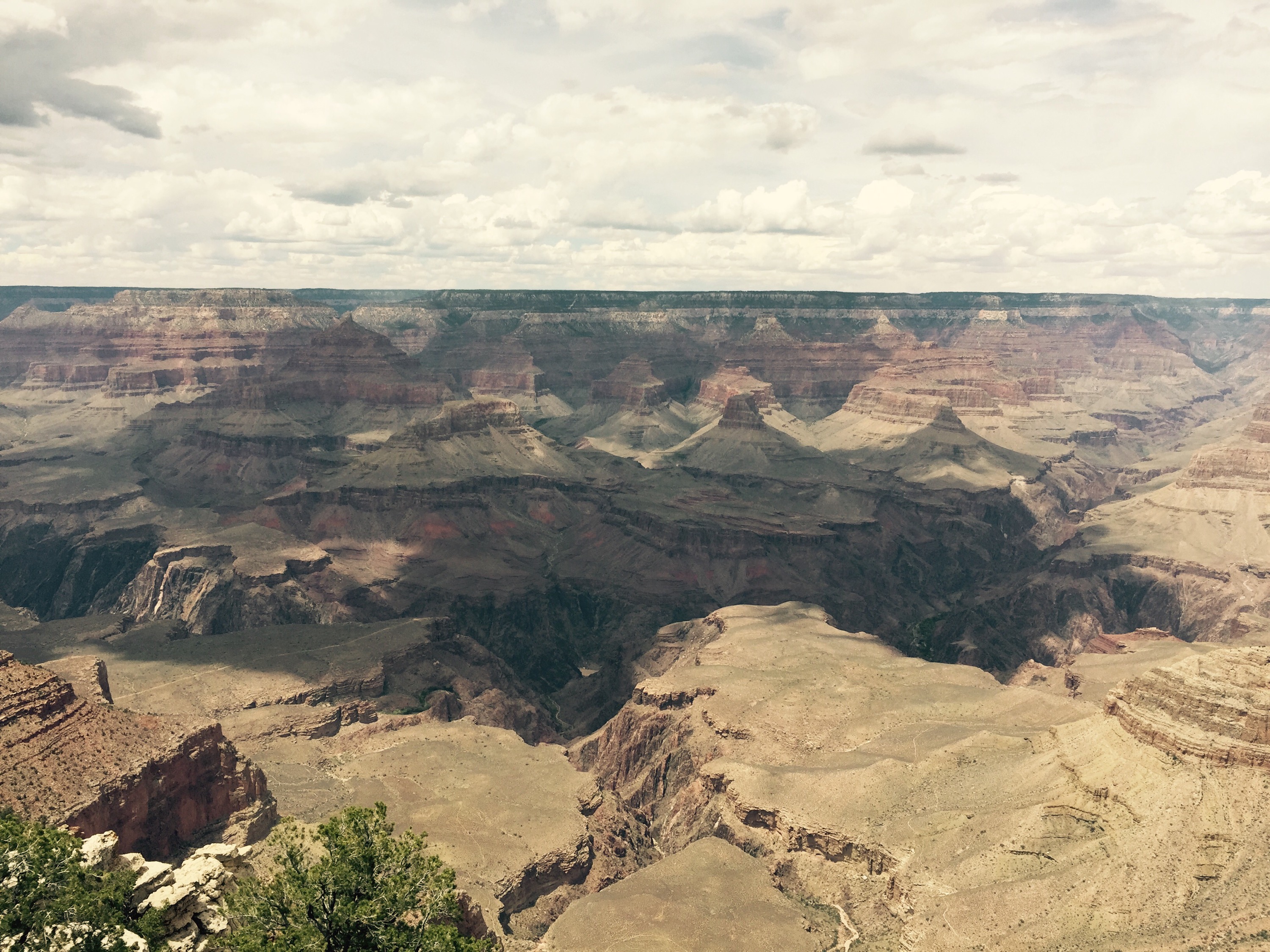 The Grand Canyon is a hard park to describe. We got in around 9AM Pacific, after driving though terrain that essentially looked like the alps. Pine forests, green mountains (even saw some ice on a couple) and winding roads. In my mind I had always envisioned the canyon in the middle of a desert, or perhaps surrounded by the same mesas we saw on the border of Arizona; but no, it was concealed entirely by forests, you’d have no idea it was there except for the unbelievable and very sudden rise in tourists.