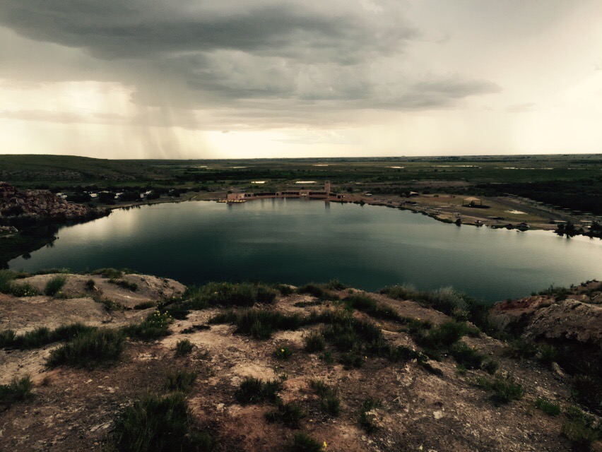 After exhausting downtown Roswell of its potential, we decided to strike out to a nearby state park: Bottomless Lakes. Though not actually bottomless, the park consists of about 8 huge sink holes ranging from seventeen to over a hundred feet deep. The water is very dark, but not so shaded as to betray it’s unnerving depth, a trait many tourists have been caught off guard by. As you can see, rain was not far off; but the weird thing is, the land is so open you can see the entire storm system from just about anywhere. We literally watched the rain slowly creep across the land, giving us plenty of time to explore the area. Although Andrew was put off by our first Tarantula sighting, we didn’t let it stop us and trudged on to the overlook, which proved to be well worth it as the view was truly spectacular (pictured above). In addition to the lakes, the area played host to a variety of red rock facades and twisting road, making it a welcome detour from the intriguing but altogether unsettling town of Roswell.